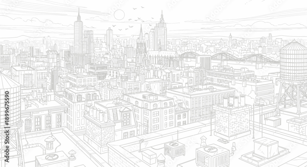 A-city-rooftop-view-line-art Wallpaper Mural - Decorly Solutions | Decorly Solutions