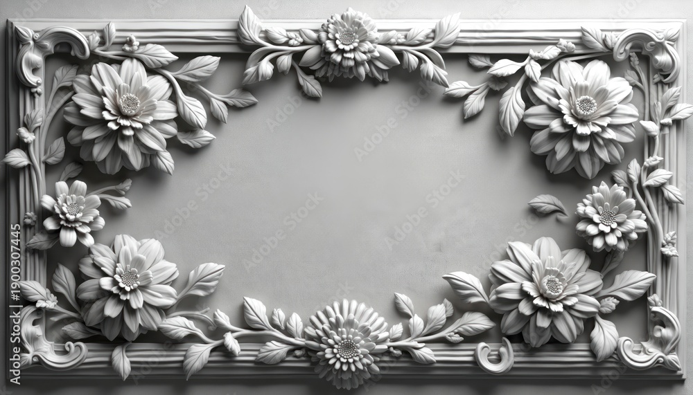 Ornate grey floral relief decor Detailed 3D flowers and leav Wallpaper