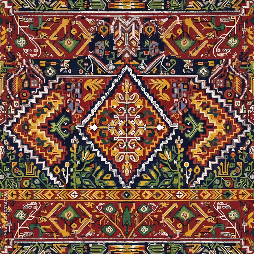 Intricate Persian Rug Pattern With Geometric And Floral Wallpaper Mural - Decorly Solutions | Decorly Solutions