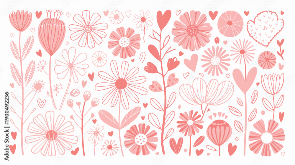 Cute Valentine Doodle Flower Pattern - Hand-drawn Romantic Wallpaper Mural - Decorly Solutions | Decorly Solutions