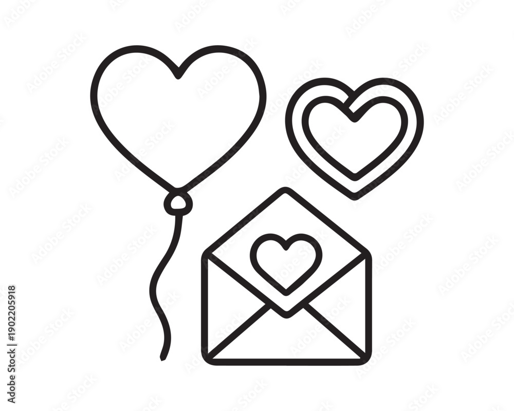 Set of illustrations: heart-shaped balloon envelope with hea Wallpaper
