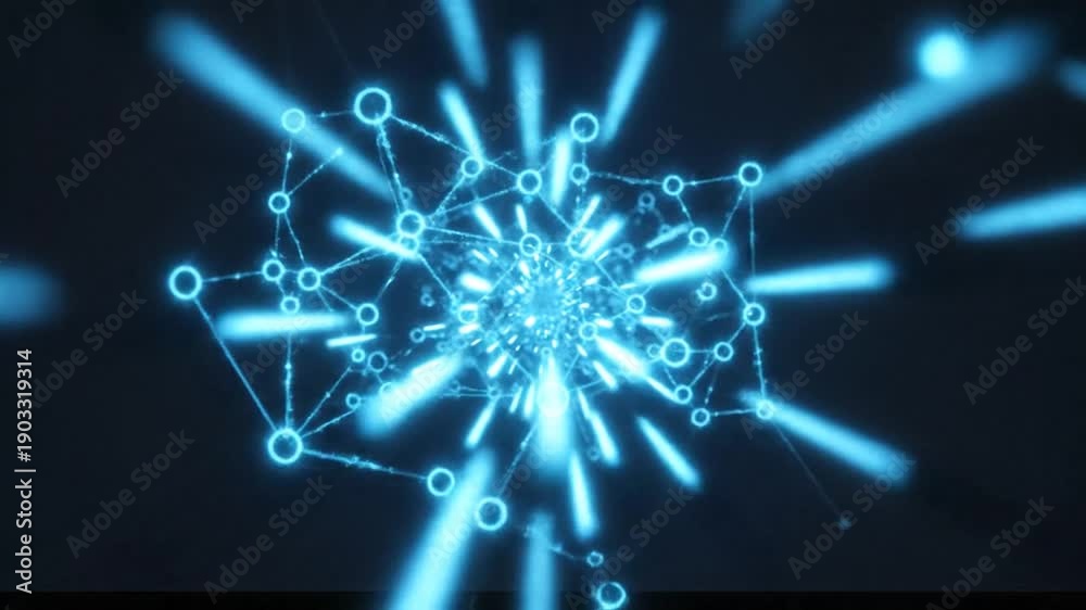 Abstract Digital Network Connections with Glowing Blue Lights.