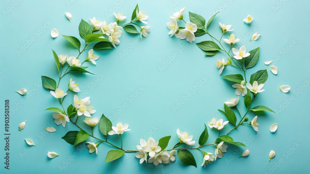 Floral Wreath Of Delicate White Blossoms Arranged On Wallpaper Mural - Decorly Solutions | Decorly Solutions