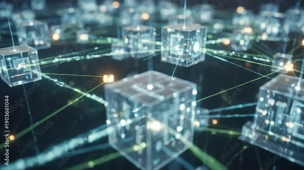 Abstract Blockchain Network with Glowing Cubes and Connected Wallpaper
