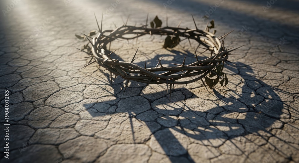 A thorny crown cast a shadow over a cracked dry ground lit b Wallpaper