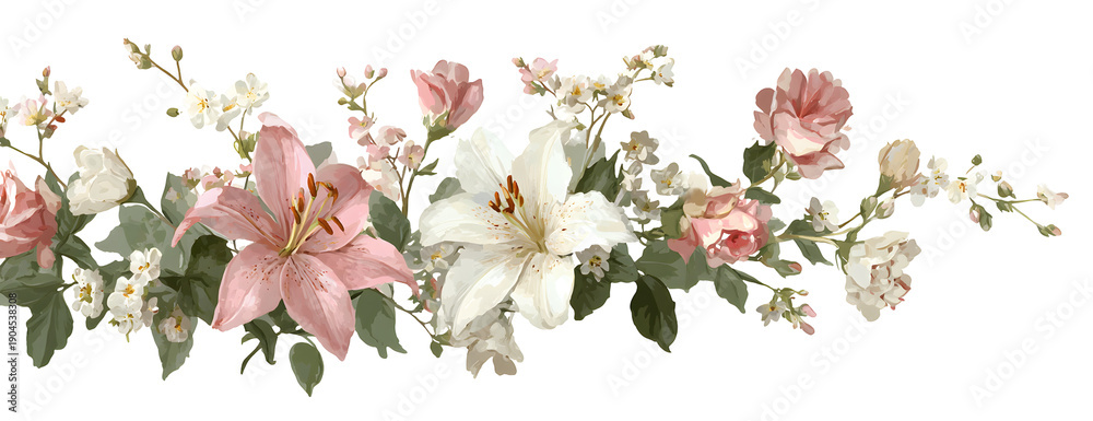 Delicate Pink And White Lilies With Wild Jasmine Wallpaper Mural - Decorly Solutions | Decorly Solutions
