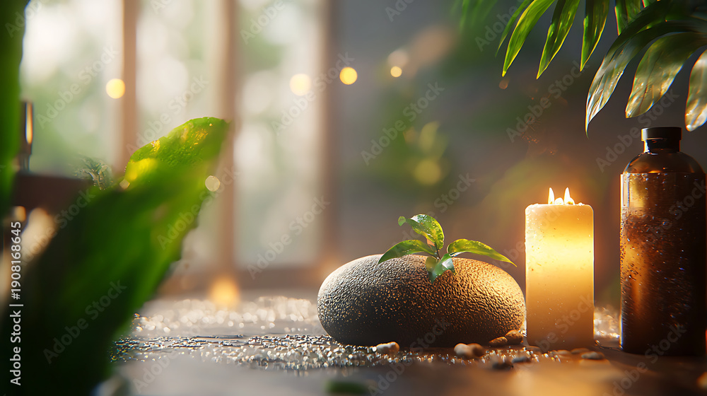 Serene Spa Setting Featuring Smooth Stone Lit Candle Wallpaper Mural - Decorly Solutions | Decorly Solutions