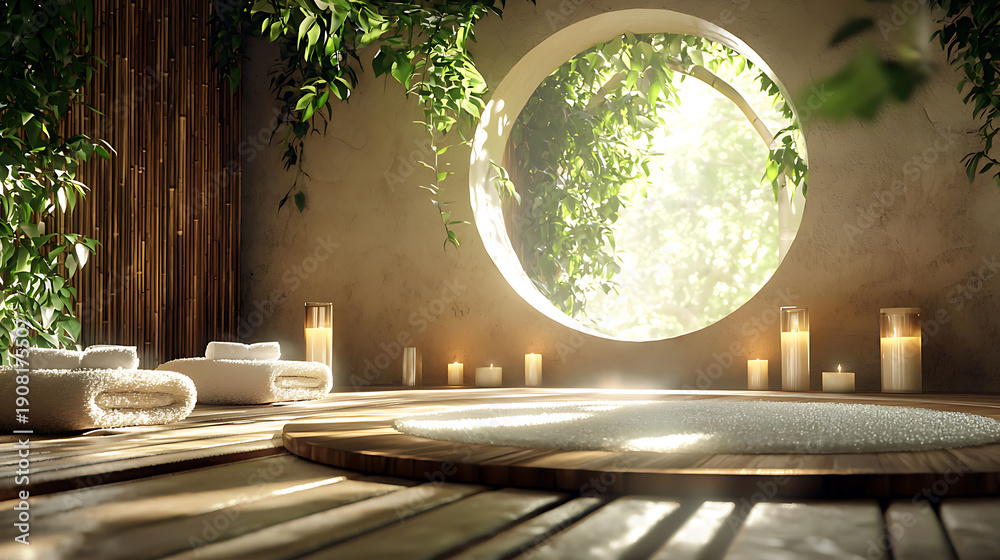 Serene Spa Interior Featuring Soft Towels Relaxing Candles Wallpaper Mural - Decorly Solutions | Decorly Solutions