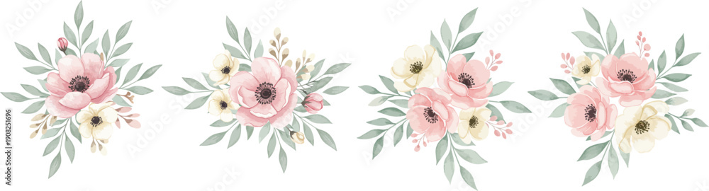 Watercolor floral arrangements with pink and yellow flowers Wallpaper