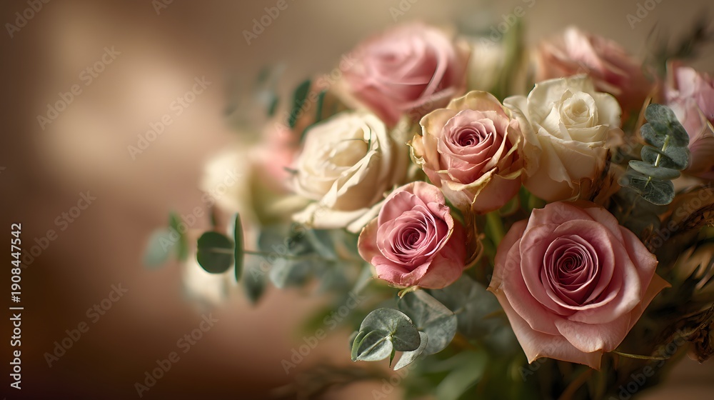 Soft Focus Bouquet Of Pink And Cream Roses Wallpaper Mural - Decorly Solutions | Decorly Solutions