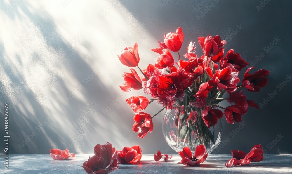 Bold Floral Arrangement Featuring Tulips In Vibrant Red Wallpaper Mural - Decorly Solutions | Decorly Solutions