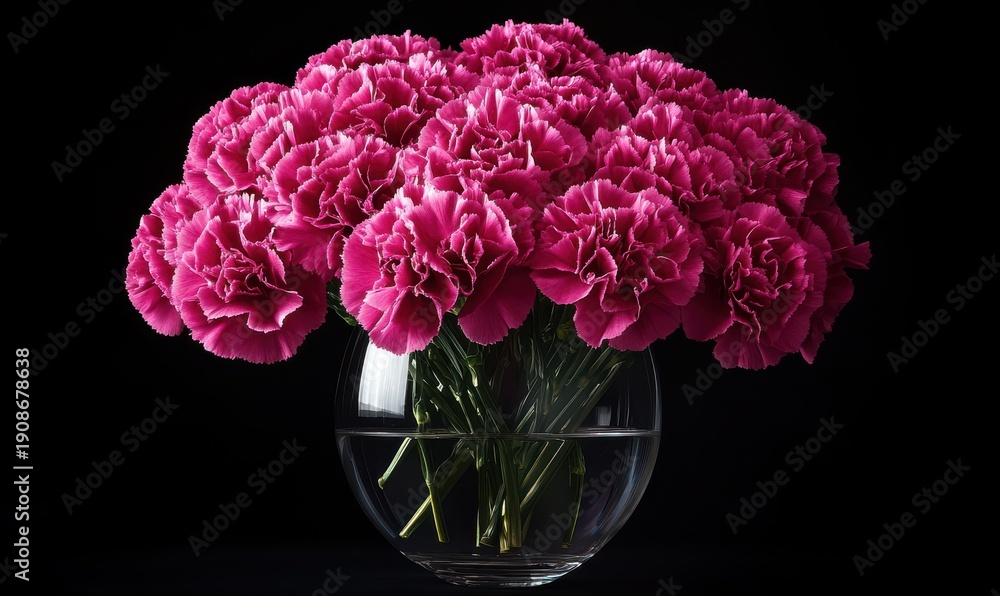 Bright pink carnations arranged in a sleek glass vase soft l Wallpaper