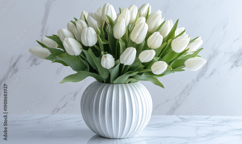 Elegant Arrangement Of Bright White Tulips Displayed In Wallpaper Mural - Decorly Solutions | Decorly Solutions