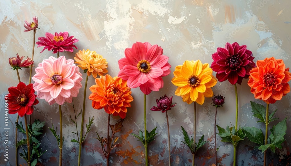 Assorted vibrant flowers arranged on white background. colorful flowers meticulously arranged on a white backdrop displaying a brilliant spectrum of colors and showcasing a variety of species
