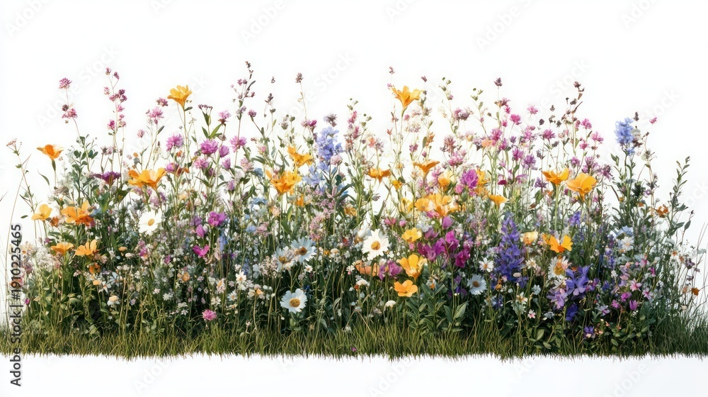 Vibrant Wildflower Border Of Daisies Orange And Purple Wallpaper Mural - Decorly Solutions | Decorly Solutions