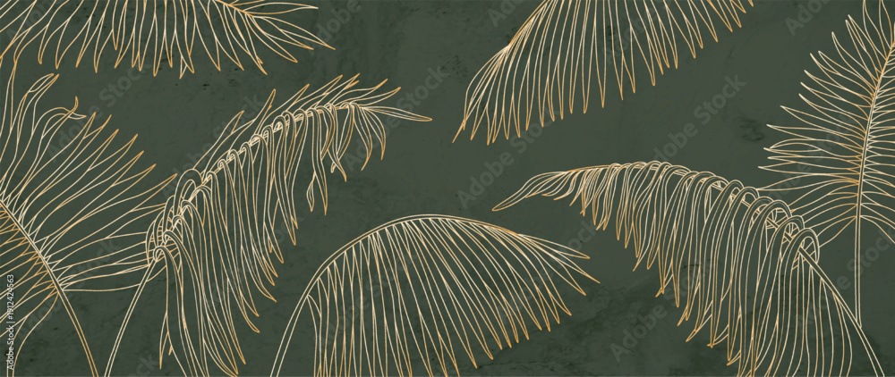 Luxurious Tropical Art Background With Golden Palm Leaves Wallpaper Mural - Decorly Solutions | Decorly Solutions