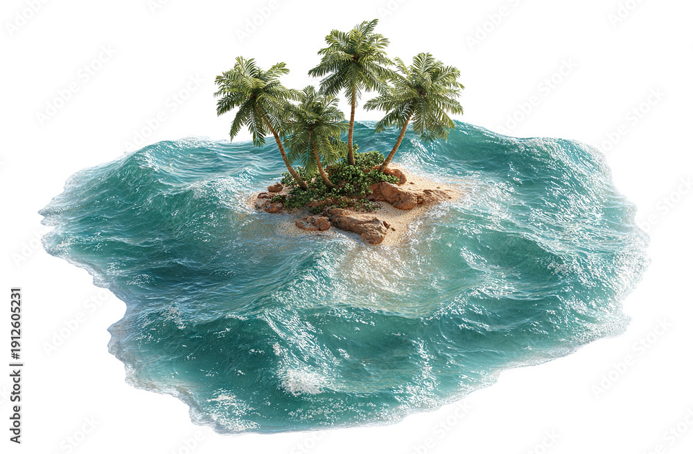 Tropical Island With Palm Cluster And Ocean Waves Wallpaper Mural - Decorly Solutions | Decorly Solutions