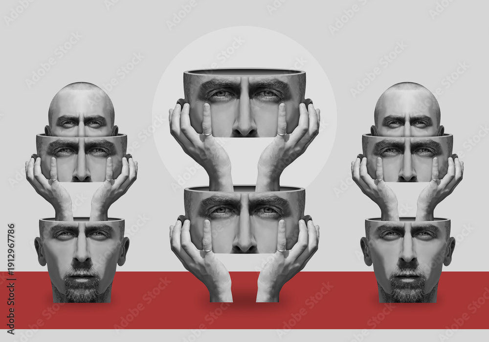 Collage With A Man's Head With Female Hands With Glasses Inside