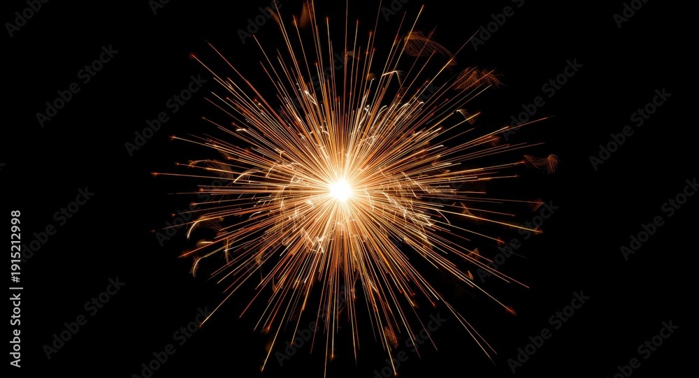 Radiating golden sparks on black backdrop