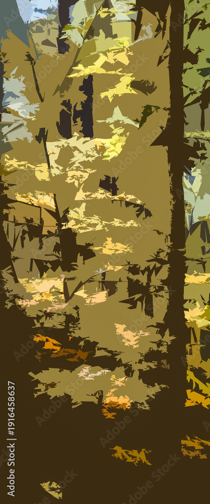 AUTUMN LANDSCAPE - Colorful tree leaves among the green pines