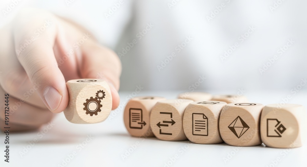 Wooden Cubes Featuring Workflow Diagram Icons Being Set Wallpaper Mural - Decorly Solutions | Decorly Solutions