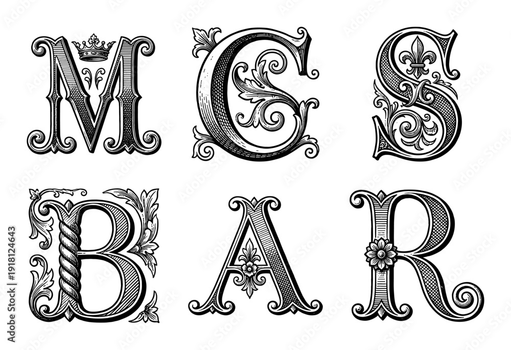 Set Of Ornate Vintage Alphabet Letters Featuring Intricate Wallpaper Mural - Decorly Solutions | Decorly Solutions