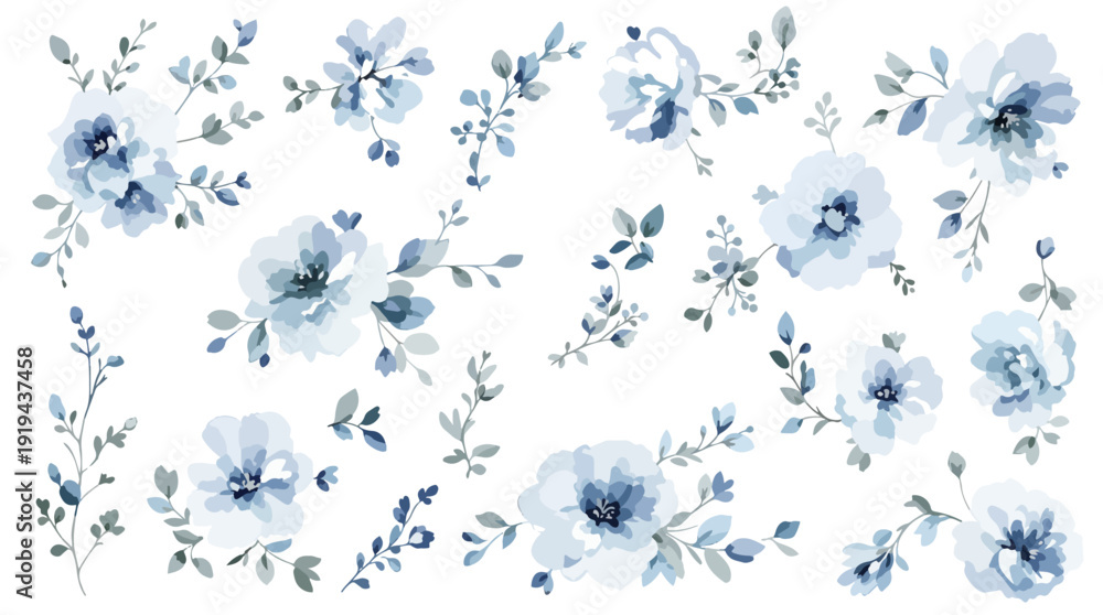 Abstract Flowers Blue Background Wallpaper Mural - Decorly Solutions | Decorly Solutions