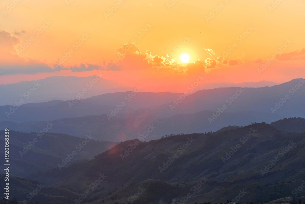Scenic view of warm light evening during sunset over mountain