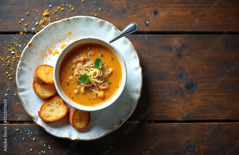 Bowl Of Creamy Onion Soup With Croutons And Wallpaper Mural - Decorly Solutions | Decorly Solutions
