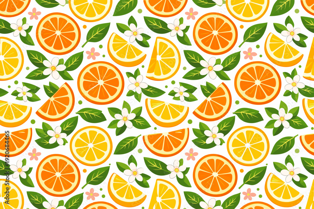 Bright Pattern With Oranges Lemons And Leaves On Wallpaper Mural - Decorly Solutions | Decorly Solutions