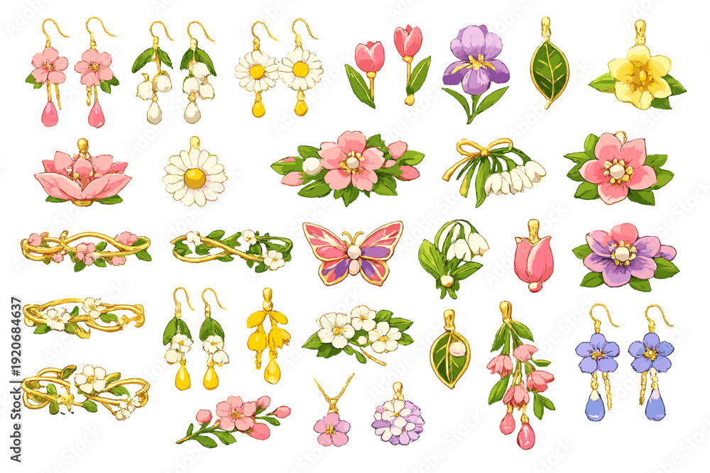 Collection Of Flower And Leaf Designs With Earrings Wallpaper Mural - Decorly Solutions | Decorly Solutions