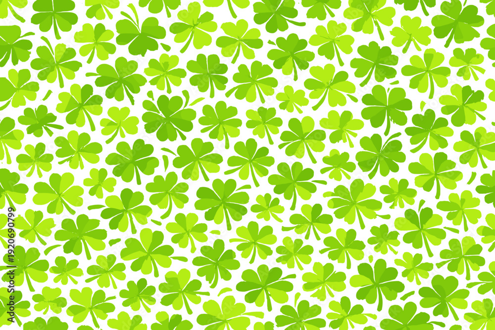 Shamrock or clover leaf flat design green seamless pattern falling leaves on white background vector illustration. Irish holiday celtic St Patrick day motif seamless pattern with shamrock clover leaf.