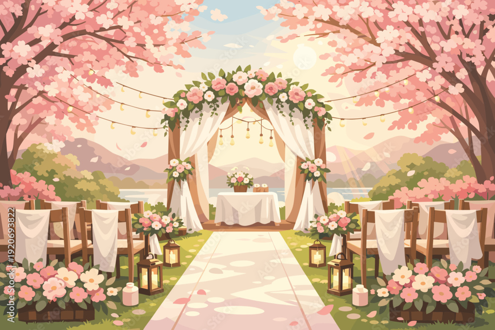 Beautiful Outdoor Wedding Scene With Cherry Blossom Trees Wallpaper Mural - Decorly Solutions | Decorly Solutions