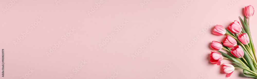 Beautiful Tulips On Pink Background Top View Banner Wallpaper Mural - Decorly Solutions | Decorly Solutions