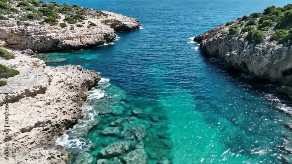 Scenic Coastal Landscape With Clear Turquoise Water Flowing Wallpaper Mural - Decorly Solutions | Decorly Solutions