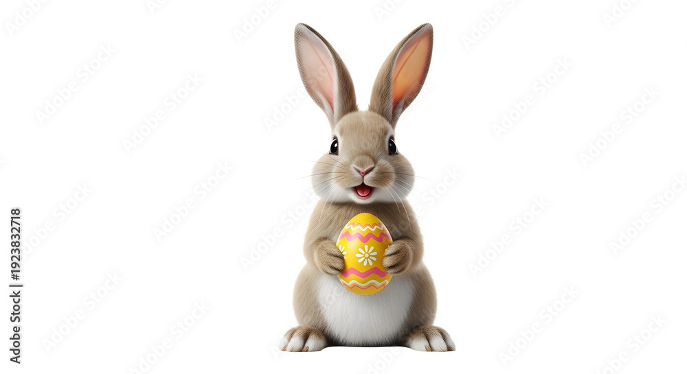 A cute Easter bunny holding a colorful egg on transparent ba Wallpaper