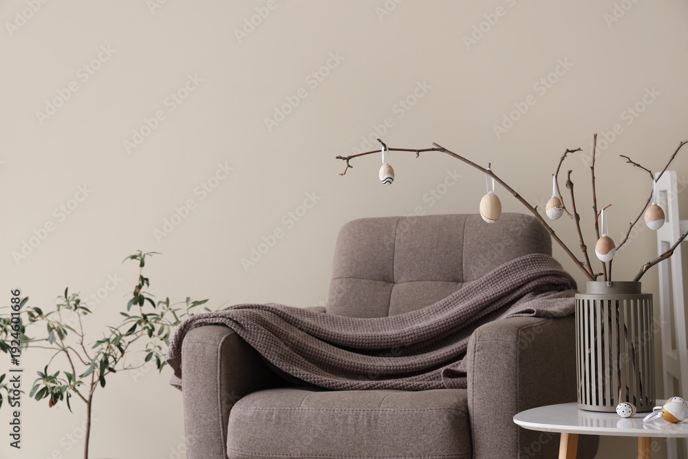 Vase With Tree Branches And Easter Eggs In Wallpaper Mural - Decorly Solutions | Decorly Solutions