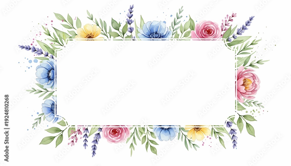 Watercolor Floral Frame With Elegant Blank Rectangle Template Wallpaper Mural - Decorly Solutions | Decorly Solutions