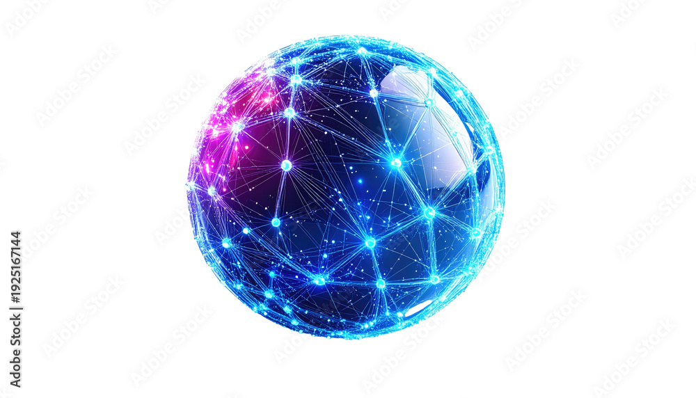 Glowing Network Sphere On Transparent Background: Digital Connection