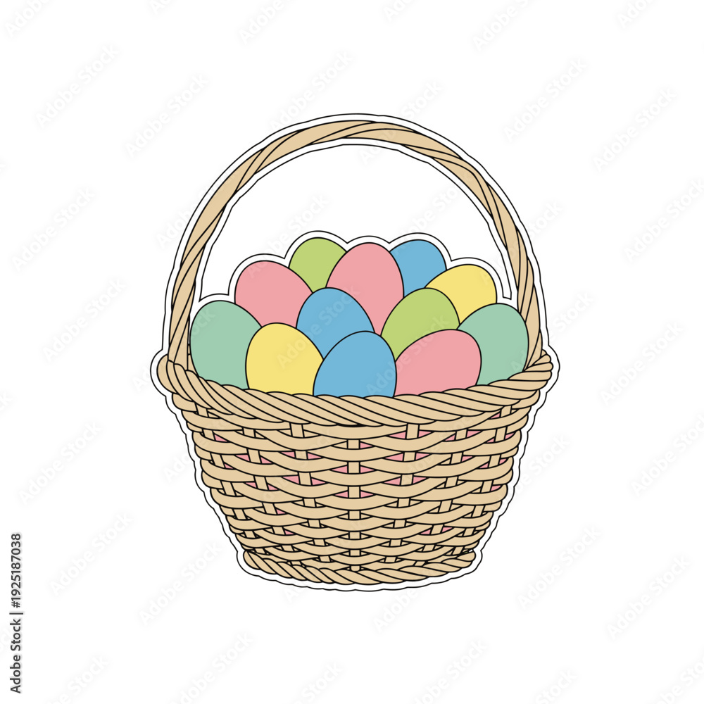 Woven Easter basket filled with decorated eggs, a classic holiday symbol