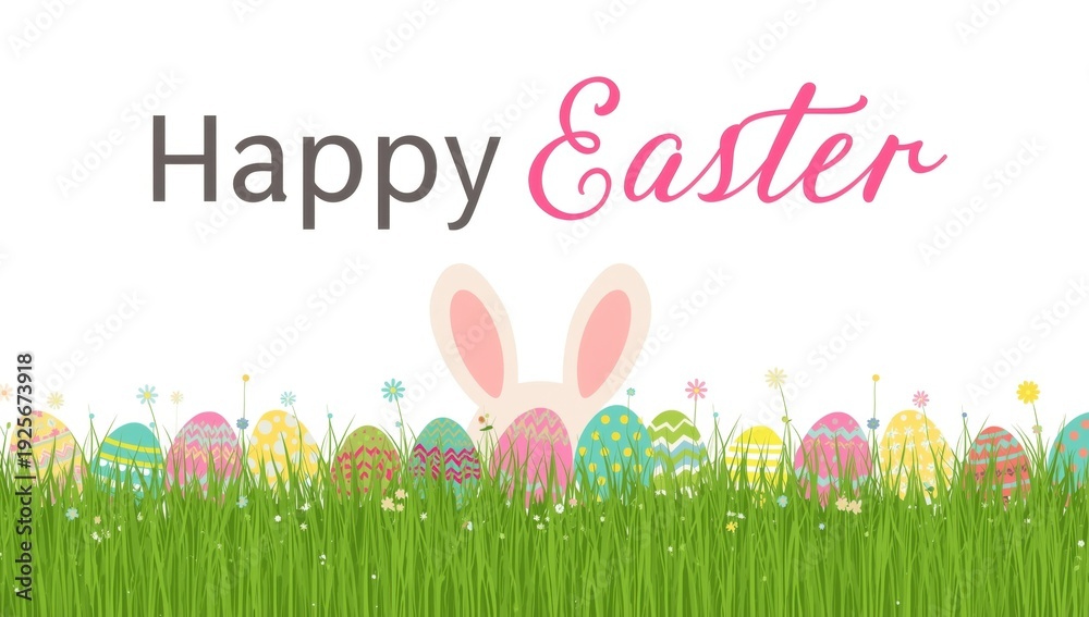 Easter Bunny Ears Behind Colorful Eggs In Grass Wallpaper Mural - Decorly Solutions | Decorly Solutions