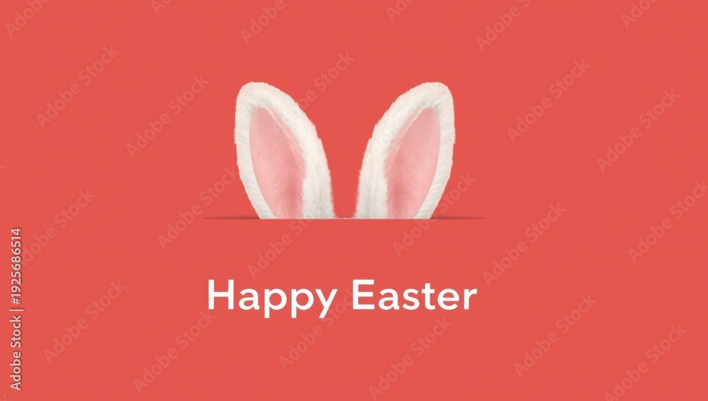 White Fluffy Bunny Ears On Red Background With Wallpaper Mural - Decorly Solutions | Decorly Solutions