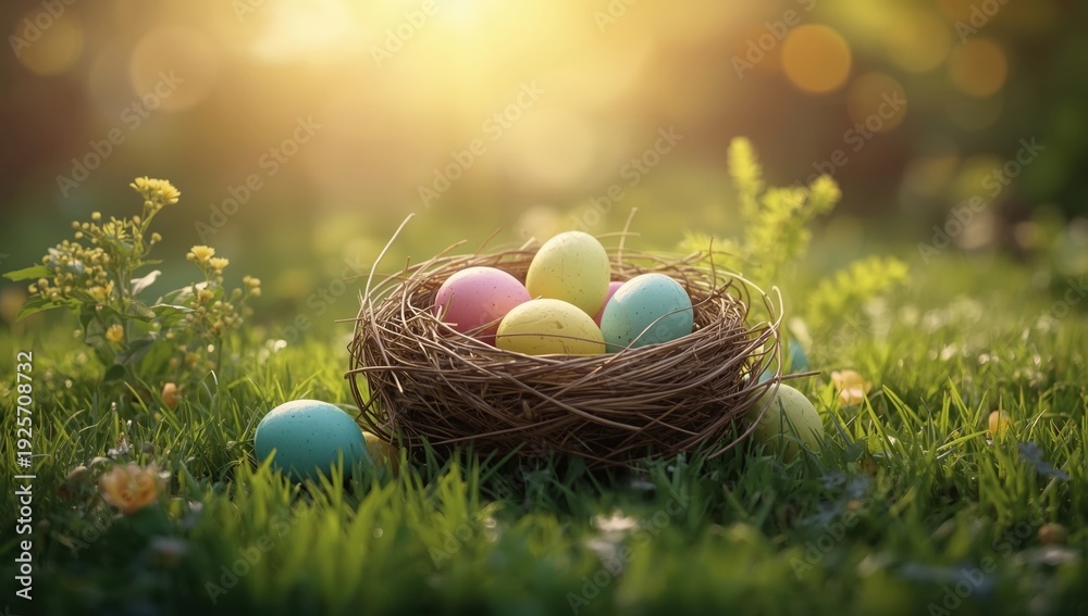 Easter Eggs In A Nest On Green Grass Wallpaper Mural - Decorly Solutions | Decorly Solutions