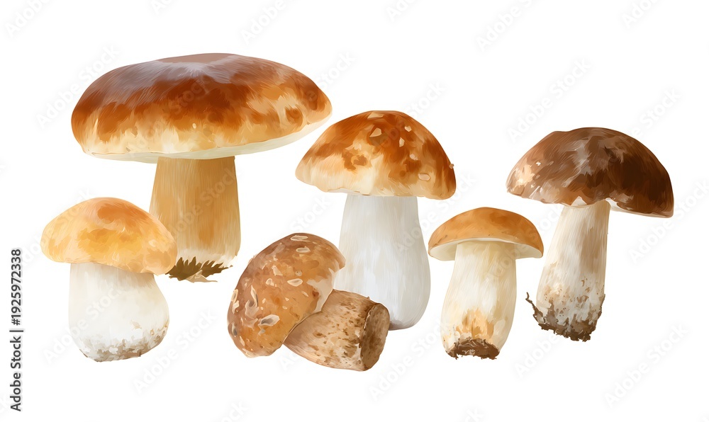 Set Of Varios Boletus Mushrooms Airbrush Illustration On Wallpaper Mural - Decorly Solutions | Decorly Solutions