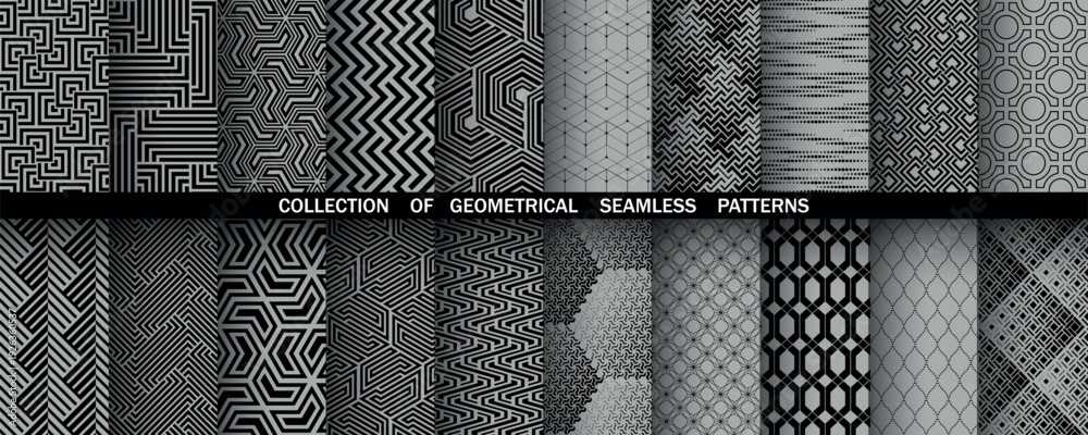 Geometric Set Of Seamless Black And Gray Patterns. Simple Vector Graphics