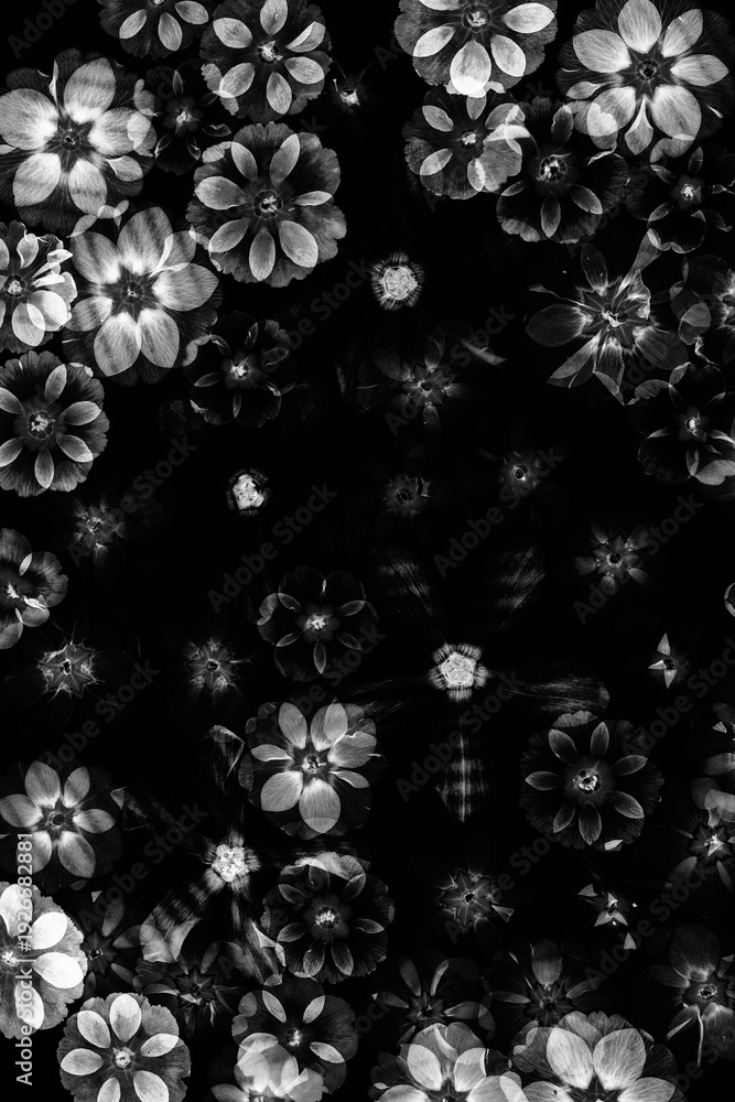 Czarno-białe tło z suszonych wiosennych kwiatów kompozycja b Wallpaper