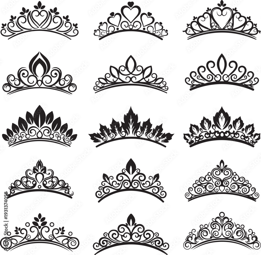 Vector Tiara Set Beautiful Queen Tiaras Or Princess Wallpaper Mural - Decorly Solutions | Decorly Solutions