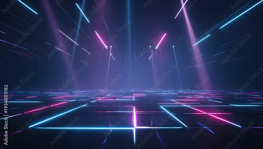 Futuristic Stage With Glowing Grid Floor And Diagonal Wallpaper Mural - Decorly Solutions | Decorly Solutions