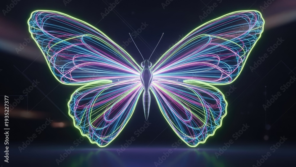 Neon Butterfly Illustration Against Dark Backdrop Digital Art Wallpaper Mural - Decorly Solutions | Decorly Solutions