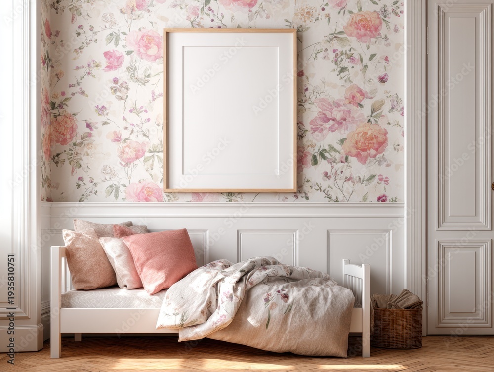 Pink Floral Wallpaper Adorns The Wall White Frame Wallpaper Mural - Decorly Solutions | Decorly Solutions